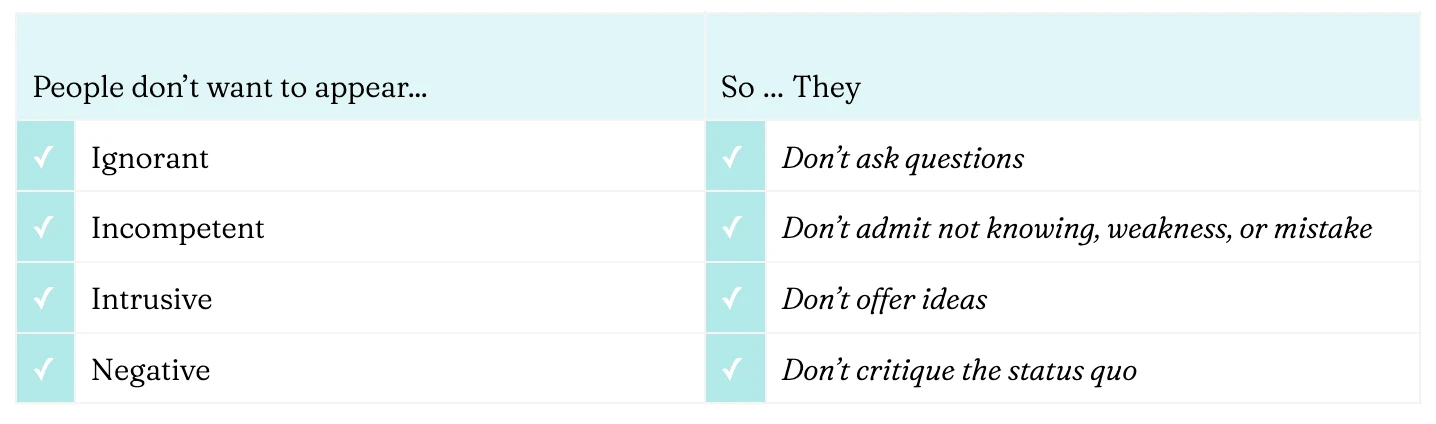 - Invite fallibility early and often to embrace not punish and ignore discovery.
